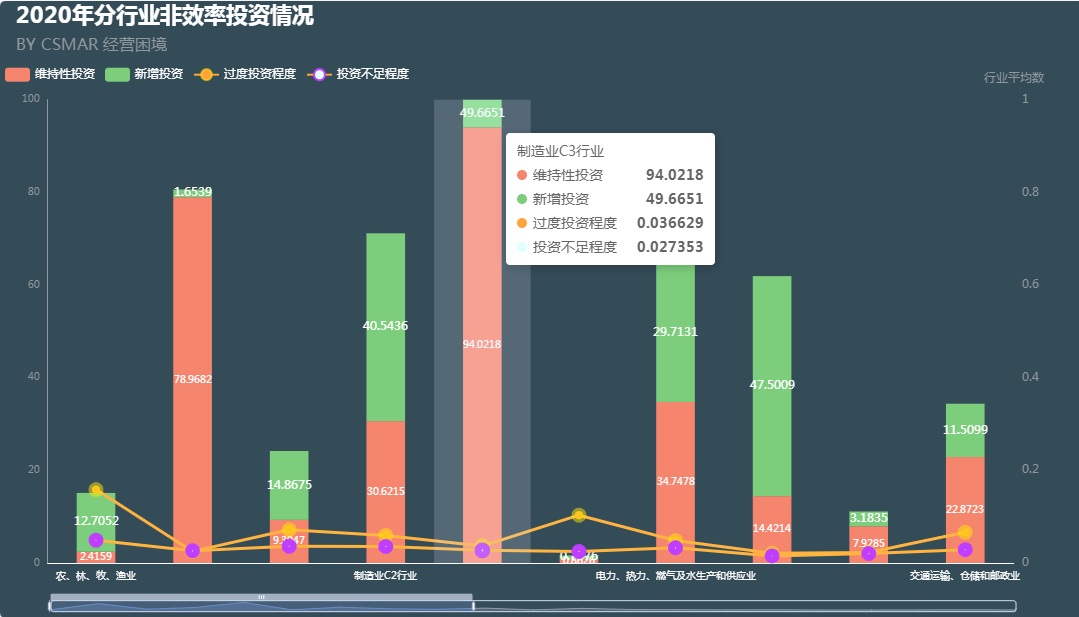 ͼ3Ч¹ûչʾÁËÆ¾Ö¤2012ÄêÖ¤¼à»áÐÐÒµ·ÖÀࣨÆäÖÐÖÆÔìÒµ¡°C¡±×ÖÍ·´úÂëÈ¡2λ £¬£¬£¬£¬£¬£¬ÆäËûÐÐҵȡ1λ £¬£¬£¬£¬£¬£¬ÌÞ³ý½ðÈÚÐÐÒµ £¬£¬£¬£¬£¬£¬Êý¾Ý´¦Öóͷ£ºó¹²»®·ÖΪ21¸öÐÐÒµ£©ºó £¬£¬£¬£¬£¬£¬ÉÏÊй«Ë¾ÔÚ2020ÄêµÄÐÐÒµÕûÌå·ÇЧÂÊͶ×ÊÇéÐÎ £¬£¬£¬£¬£¬£¬°üÀ¨µÄÖ÷ÒªÖ¸±êÓÐά³ÖÐÔͶ×Ê¡¢ÐÂÔöͶ×Ê¡¢Ì«¹ýͶ×Êˮƽ¡¢Í¶×Êȱ·¦¡£¡£¡£¡£¡£¡£´Ó±íÖпÉÒÔ¿´³öÀ´ £¬£¬£¬£¬£¬£¬Ò»·½Ãæ £¬£¬£¬£¬£¬£¬¿ÉÄÜÊÜÒßÇéµÄÓ°Ïì £¬£¬£¬£¬£¬£¬62%µÄÐÐÒµ¾ùÒÔά³ÖÐÔͶ×ÊΪÖ÷ £¬£¬£¬£¬£¬£¬×ÜͶ×ʶî×î´óµÄÊÇÖÆÔìÒµC3ÐÐÒµ£¨°üÀ¨£º2012°æÖ¤¼à»áÐÐÒµ·ÖÀàC30-C39ÐÐÒµ£©×ÜͶ×ʶî´ï143.68ÒÚÔª £¬£¬£¬£¬£¬£¬ÆäÖÐά³ÖÐÔͶ×Ê94.02ÒÚ £¬£¬£¬£¬£¬£¬ÐÂÔöͶ×Ê49.66ÒÚ£»£»£»£»£»£»£»ÁíÒ»·½Ãæ £¬£¬£¬£¬£¬£¬ÓëÈËÃñÉúÑÄÇ×½üÏà¹ØµÄÅ©ÁÖÄÁÓæÒµ¡¢ÖÆÔìÒµ¡¢·¿µØ¹¤Òµ¡¢½ÌÓýÒµµÈÒ²·ºÆð³öÐÂÔöͶ×ʶî´óÓÚά³ÖÐÔͶ×ʵÄÎÈÖÐÇó½øµÄÇéÐΡ£¡£¡£¡£¡£¡£µ«ÎÒÃÇ´ÓʹÓÃÐÐҵƽ¾ùÊýÅÌËãµÃ³öµÄ·ÇͶ×ÊЧÂÊÀ´¿´ £¬£¬£¬£¬£¬£¬ÕûÌåÉÏ´ó¶¼ÐÐÒµÕվɱ£´æÌ«¹ýͶ×ʵÄÇéÐΡ£¡£¡£¡£¡£¡£