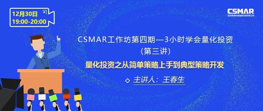 Ëæ×ű¾´Î¿Î³Ì¿¿½üβÉù £¬£¬£¬£¬£¬CSMARÊÂÇé·»µÚËÄÆÚ--3Сʱѧ»áÁ¿»¯Í¶×ÊרÌâÅàѵҲ¸æÒ»¶ÎÂäÁË¡£ ¡£¡£¡£¡£¡£±¾ÆÚCSMARÊÂÇé·»¿Î³ÌÒÔ¡°Á¿»¯Í¶×ÊÖ®½ðÈÚÊý¾Ý¼°Ë½Ä¼Õ½ÂÔ·ÖÀࡱ¡¢¡°Á¿»¯Í¶×ÊÖ®Python¿ª·¢Ëٳɼ°Á¿»¯¿ò¼Ü¡¢½Ó¿Ú¡±¼°¡°Á¿»¯Í¶×ÊÖ®´Ó¼òÆÓÕ½ÂÔÉÏÊÖµ½µä·¶Õ½ÂÔ¿ª·¢¡±ÎªÖ÷Ìâ £¬£¬£¬£¬£¬»·»·Ïà¿Û £¬£¬£¬£¬£¬ÄÚÈÝϸÄåÖÜÈ« £¬£¬£¬£¬£¬Ï¸ÃÜÍŽáʵս¡£ ¡£¡£¡£¡£¡£