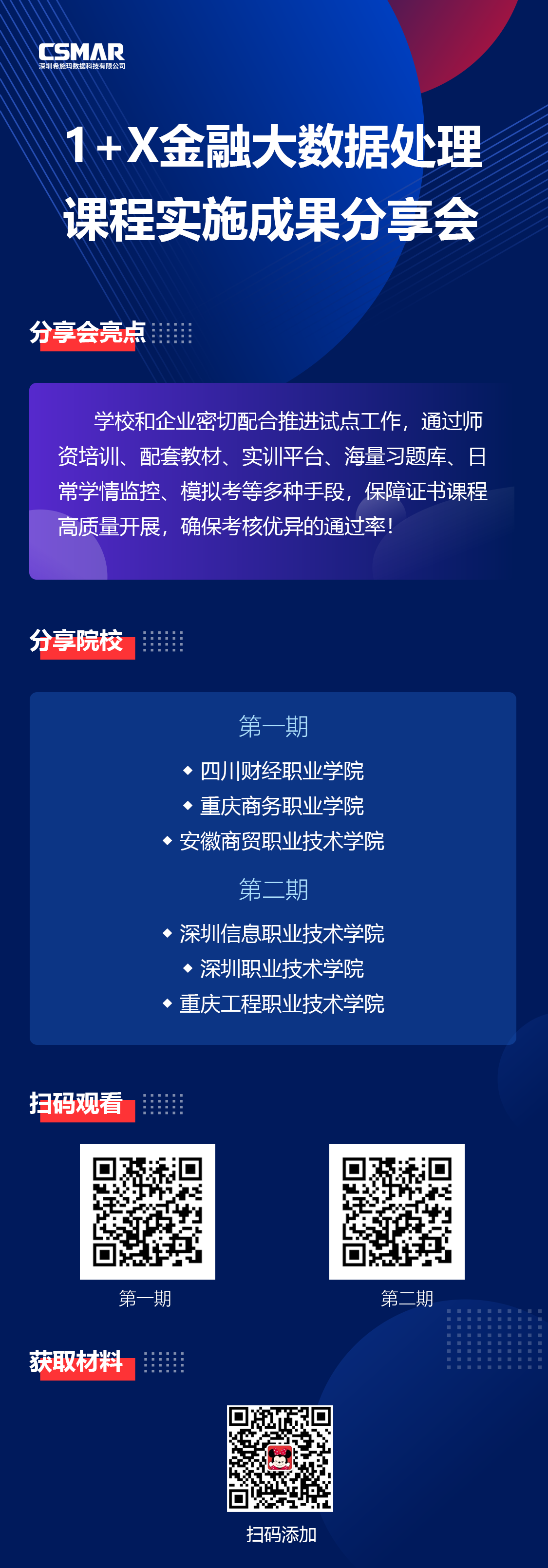 为贯彻落实教育部《国家职业教育刷新实验计划》 ,,, ,,,,稳步推进1+X职业手艺品级证书试点 ,,, ,,,,J9集团(china)公司官网(下称深圳J9集团(china)公司官网)开展了“1+X金融大数据处置惩罚课程实验效果分享会”线上直播交流运动。。。。。