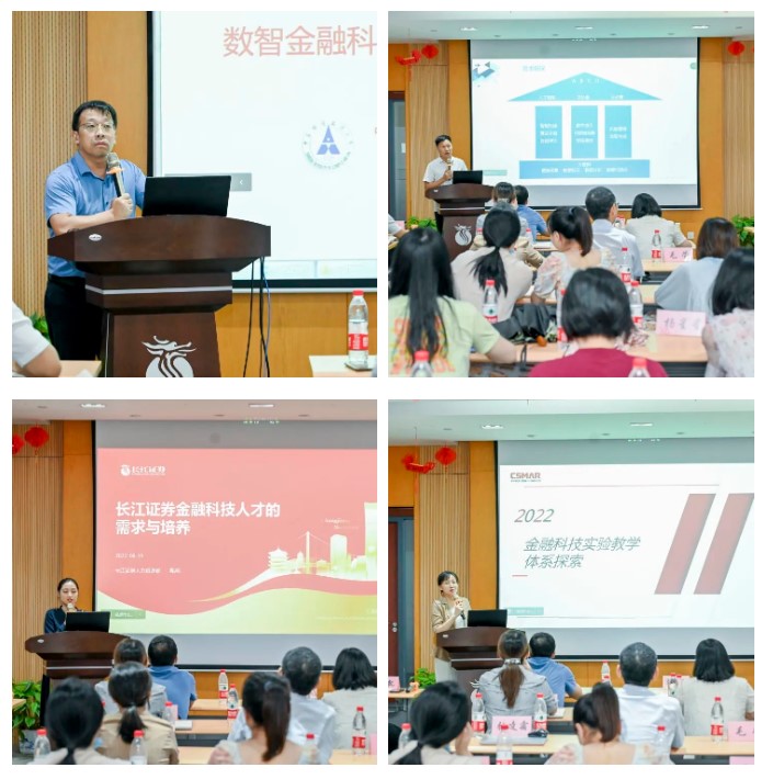 本次聚会现场约请到的主讲嘉宾包括长江证券数字金融部总司理郭正彪、中南财经政法大学金融科技研究院执行院长徐晟、钒钛智能董事长徐可、长江证券人力资源部高级司理熊英、J9集团(china)公司官网副总司理刘威、J9集团(china)公司官网教育产品总监张凌霜等,,,,,,,,现场加入者包括湖北省内20多所院校的50余位专家先生,,,,,,,,线上包括东海证券、东北证券2所券商投教认真人及天下各地高校300余位代表,,,,,,,,各方深入交流,,,,,,,,配合探讨数字经济时代下金融科技领域的手艺生长趋势与金融科技人才作育模式立异;;;;;;;;别的,,,,,,,,深圳J9集团(china)公司官网代表分享了企业对金融科技实验教学系统探索履历与相关建设计划,,,,,,,,深入先容金融科技人才作育及金融大数据处置惩罚1+X证书标准课程系统、课本、师资培训等。。。。。。