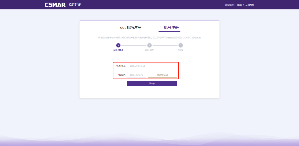 µÚ¶þ²½£º¿ÉÑ¡ÔñeduÓÊÏä×¢²á»òÕßÊÖ»úºÅ×¢²á£¨Çø±ð£ºÊÖ»úºÅ×¢²áÐèÒªÉÏ´«Ñ§ÉúÖ¤/У԰¿¨µÈÖ¤¼þÕÕÆ¬£¬£¬£¬£¬£¬eduÓÊÏä×¢²á²»ÐèÒªÉÏ´«£©£¬£¬£¬£¬£¬ÒÔÊÖ»úºÅ×¢²áΪÀý£¬£¬£¬£¬£¬µã»÷ÉÏͼµÄ¡¾ÊÖ»úºÅ×¢²á¡¿£¬£¬£¬£¬£¬Ìîд¡°ÊÖ»úºÅÂ롱¼°¶ÌÐÅÊÕµ½µÄ¡°ÑéÖ¤Â롱£¬£¬£¬£¬£¬ÌîдÀֳɺ󣬣¬£¬£¬£¬µã»÷¡¾ÏÂÒ»²½¡¿£¬£¬£¬£¬£¬ÏÔʾÌîд¡°»ù±¾ÐÅÏ¢¡±½çÃæ¡£¡£¡£¡£¡£¡£